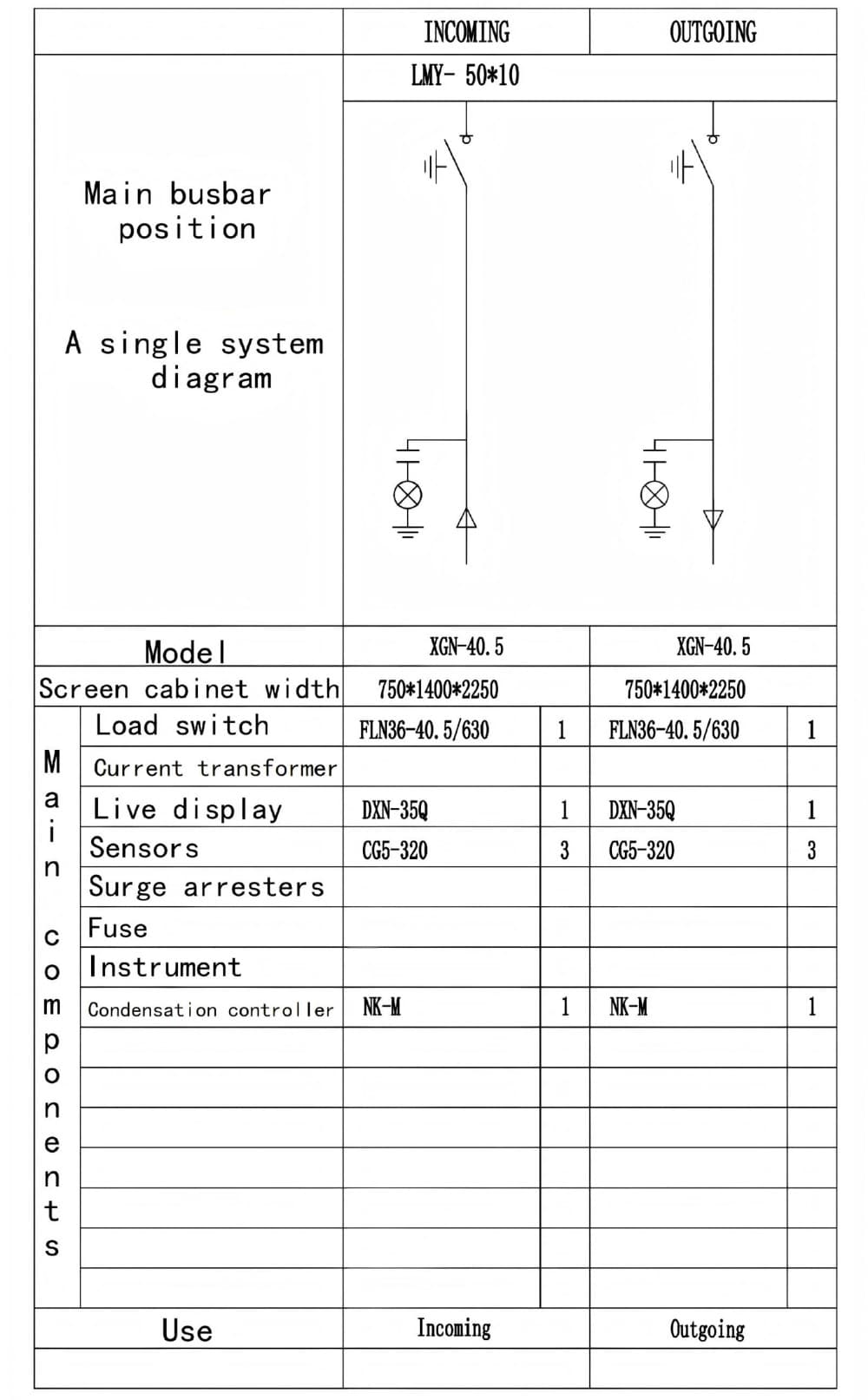 Πίνακας διακοπτών κύριας μονάδας δακτυλίου 12KV