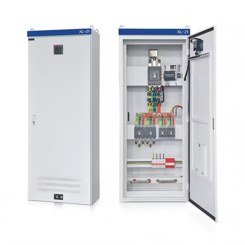 Ο θάλαμος διανομής ρεύματος χαμηλής τάσης XL-21 χρησιμοποιείται κυρίως για διανομή ρεύματος σε βιομηχανικές και μεταλλευτικές επιχειρήσεις που χρησιμοποιούν τριφασικά, τριφασικά και τριφασικά, τετρασύρματα συστήματα με συχνότητες AC έως 50 Hz και τάσεις έως 500 V, καθώς και για φωτισμό ισχύος. Είναι ένα κλειστό περίβλημα κατασκευασμένο από λυγισμένες χαλύβδινες πλάκες. Η χειρολαβή λειτουργίας του διακόπτη μαχαιριού βρίσκεται στην επάνω δεξιά μπροστινή στήλη, παρέχοντας εναλλαγή ισχύος. Ένα βολτόμετρο είναι εγκατεστημένο στον πίνακα διανομής για να υποδείξει την τάση της ράβδου ζυγού. Η μπροστινή πόρτα εκθέτει όλα τα εσωτερικά εξαρτήματα για εύκολο έλεγχο και συντήρηση. Αυτό το ντουλάπι διανομής χρησιμοποιεί εξαρτήματα τελευταίας τεχνολογίας, με αποτέλεσμα συμπαγή σχεδιασμό, εύκολη συντήρηση και ευέλικτες διαμορφώσεις καλωδίωσης. Εκτός από διακόπτες κυκλώματος αέρα και ασφάλειες για προστασία από βραχυκύκλωμα, το ντουλάπι διαθέτει επίσης επαφές και θερμικά ρελέ. Η μπροστινή πόρτα διαθέτει κουμπιά και ενδεικτικές λυχνίες.